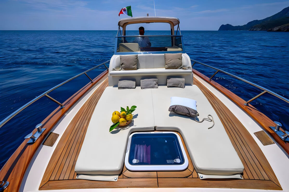 Onboard, you’ll find a cozy cabin, a functional bathroom, spacious sunbathing areas, and a shaded cockpit perfect for enjoying the coastline in total comfort. Whether you want to swim in hidden coves, explore famous landmarks like the Faraglioni of Capri, or admire the cliffs of Positano and the legendary Amalfi Coast, the Jeranto 28 delivers an exclusive and authentic Italian boating experience.